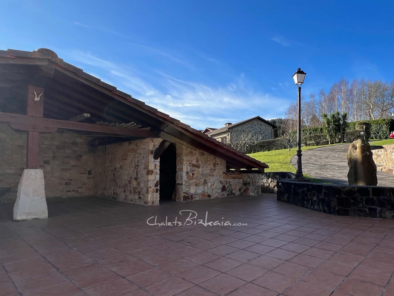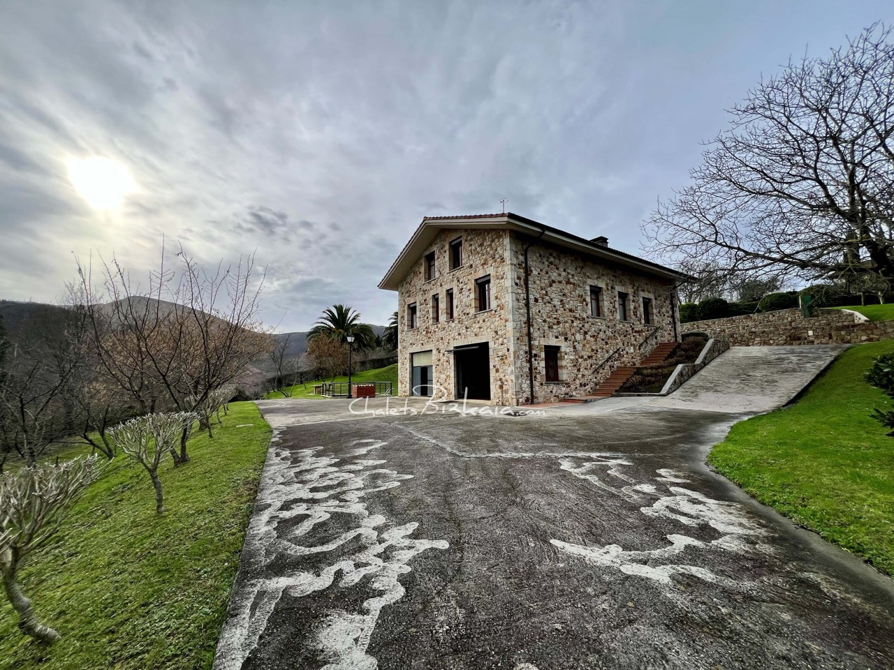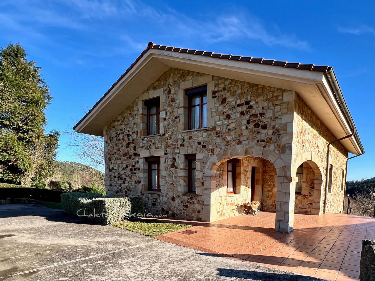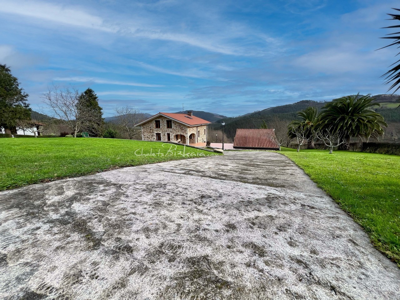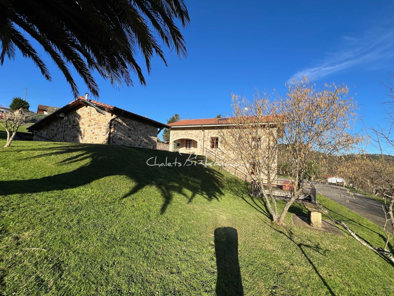 La casa se ubica en parcela con vistas abiertas al entorno natural, en posición dominante, rodeada de zonas verdes que aportan privacidad y conexión con el paisaje. El acceso se realiza por camino rodado hasta explanada frontal para maniobra y estacionamiento.